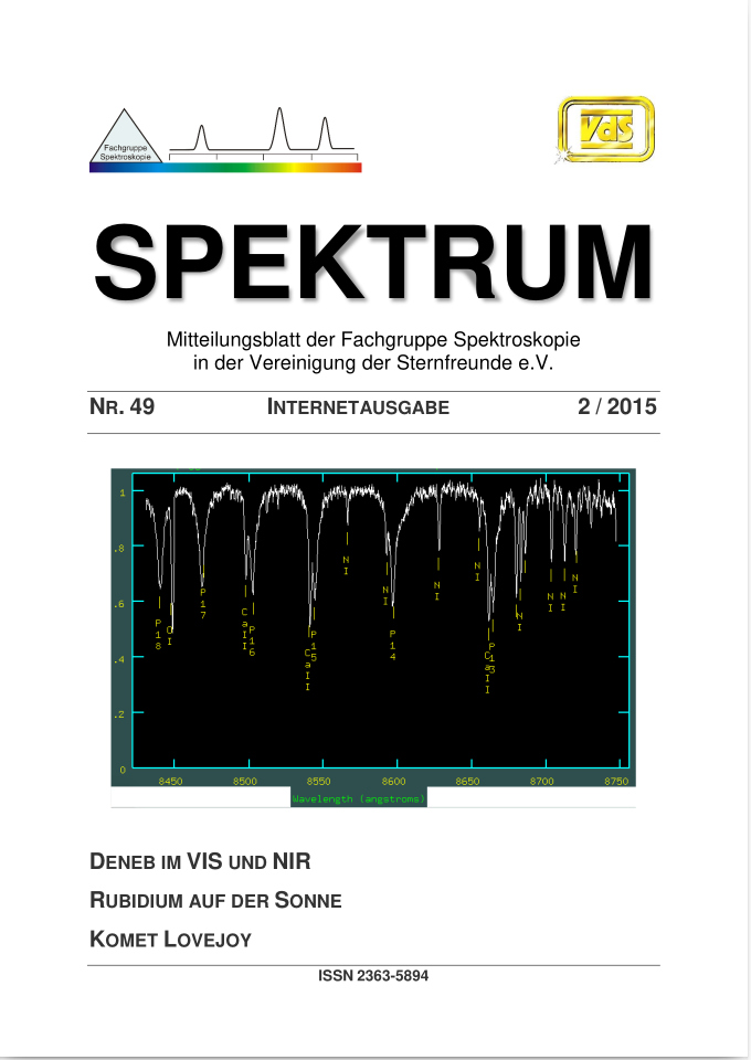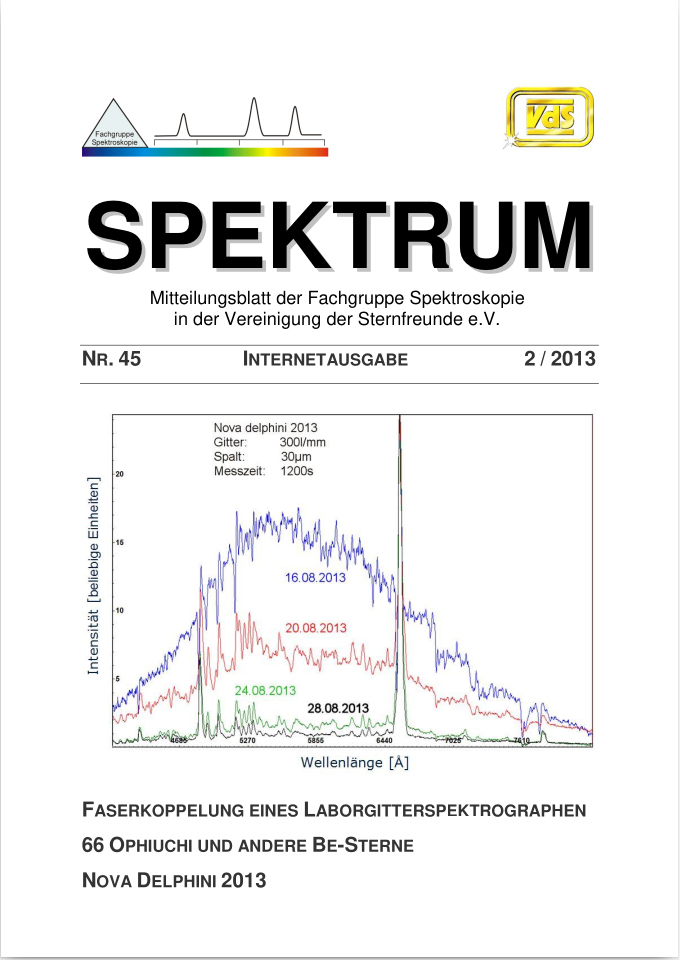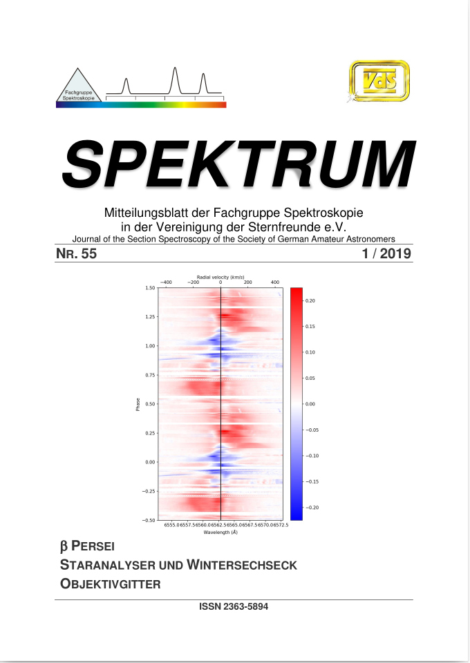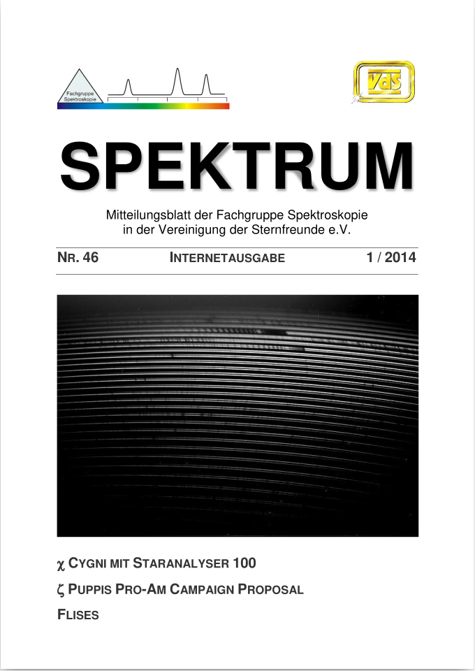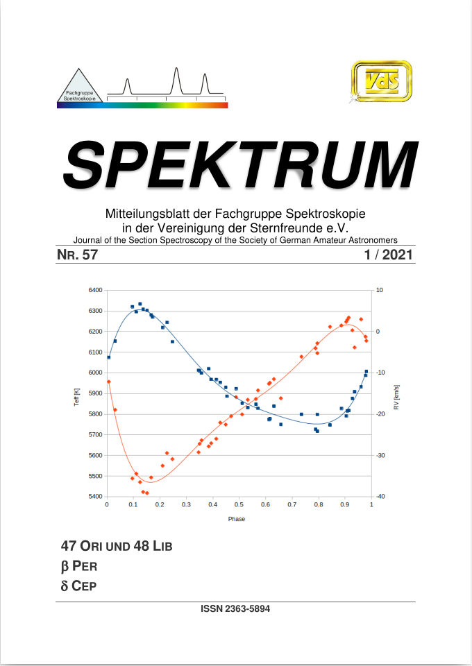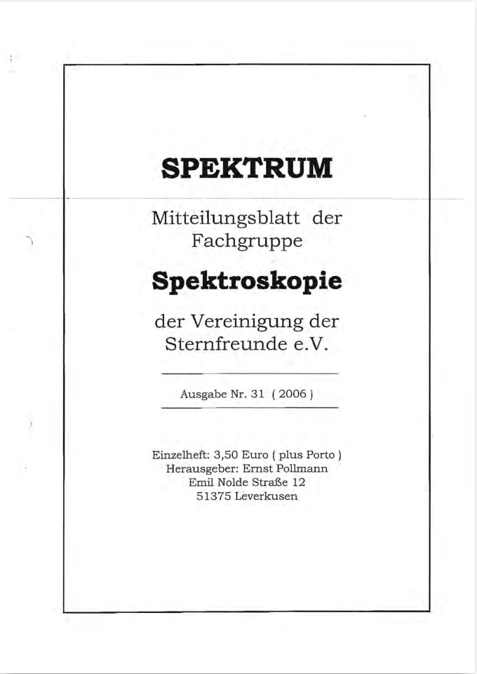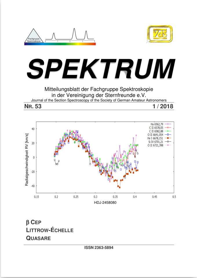 SPEKTRUM (ISSN 2363-5894) is the world's oldest ProAm Journal for spectroscopy. The text can be written in German and English. Dr. Thomas Hunger is our current editor and publisher. Please send all contributions to him.