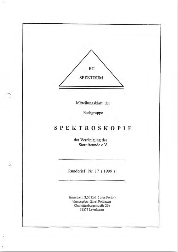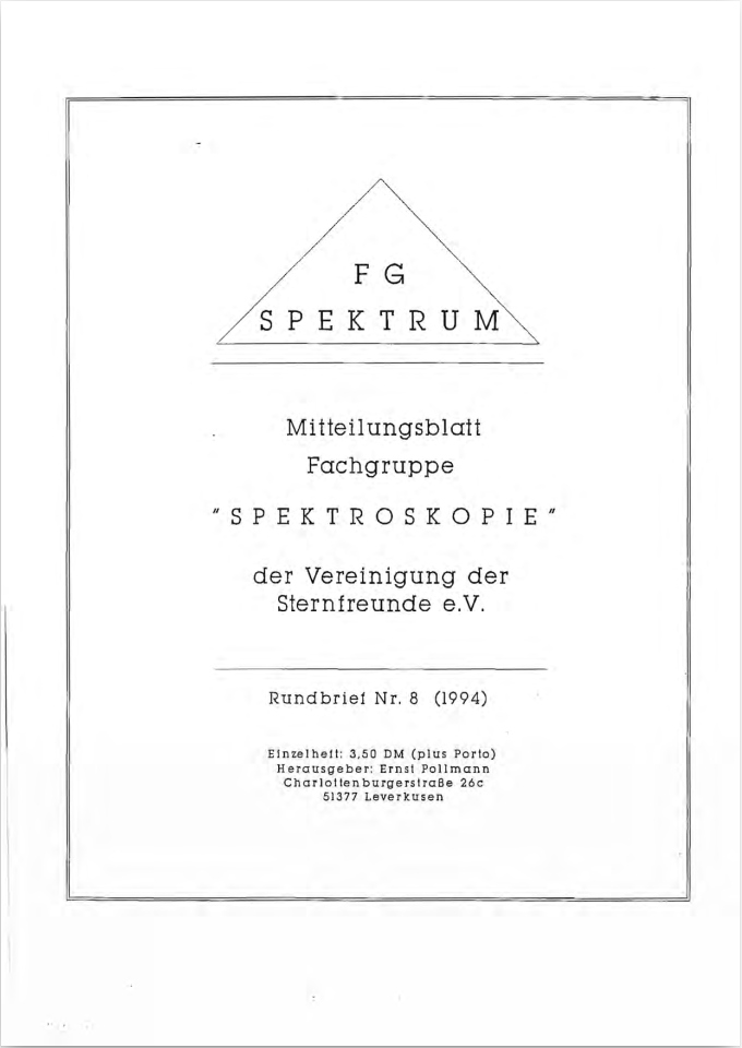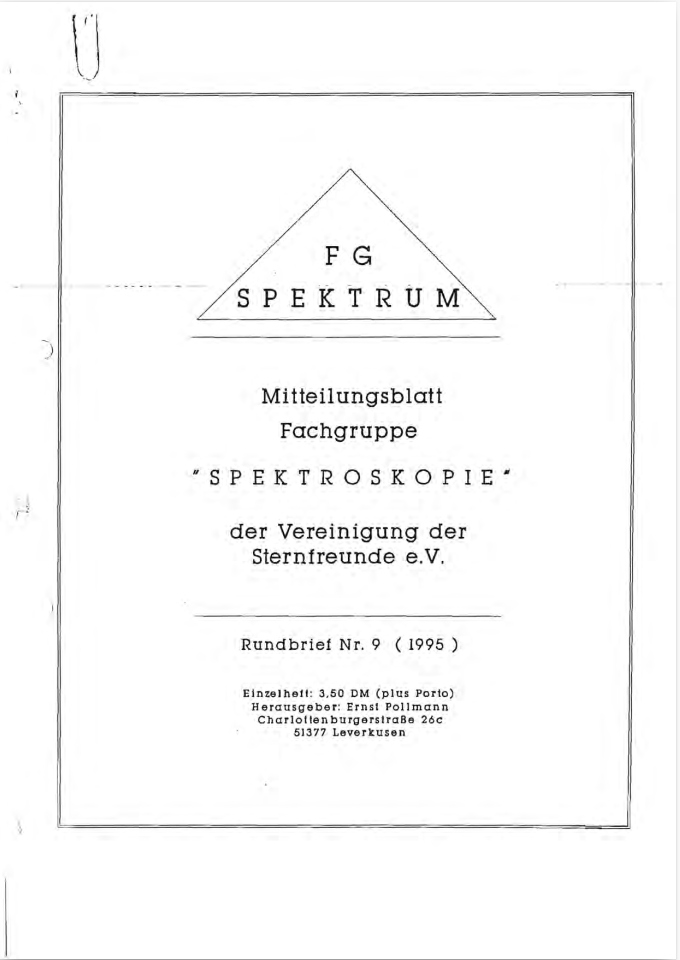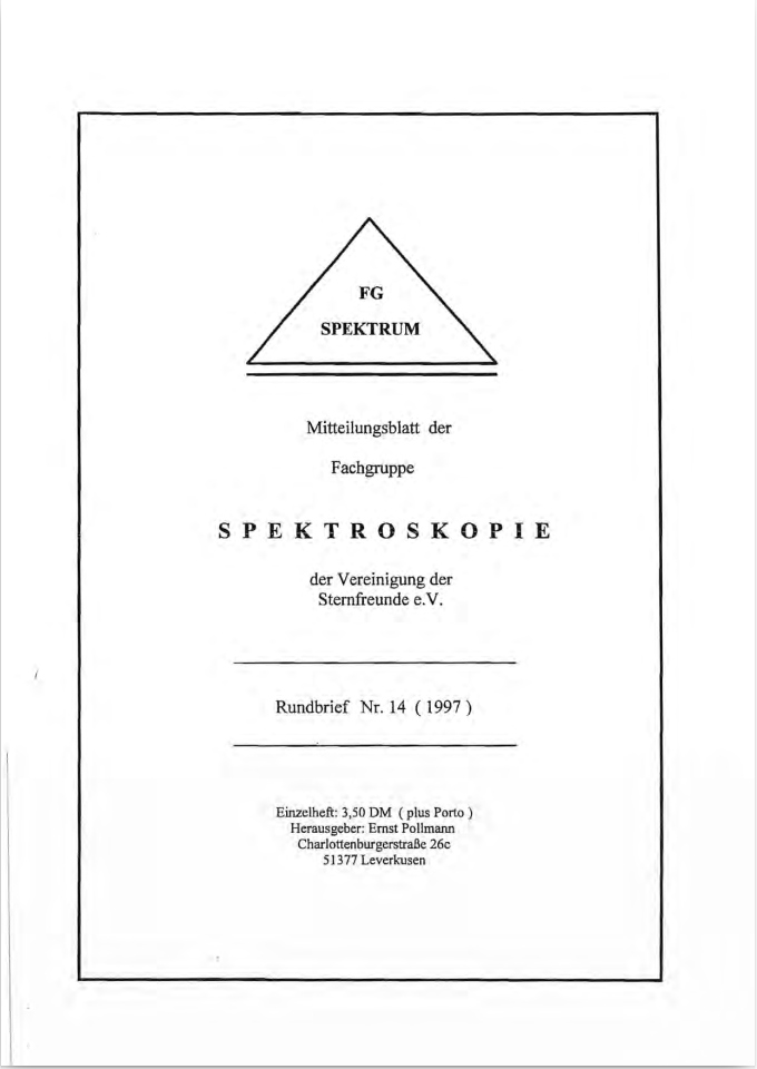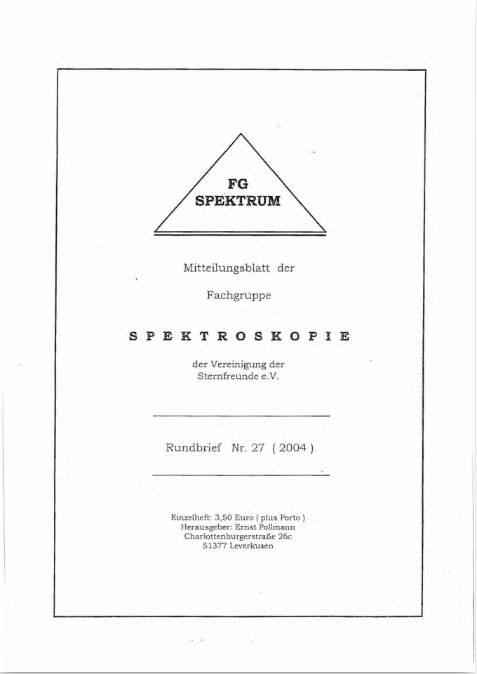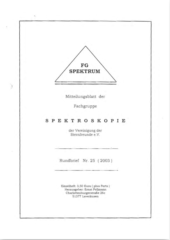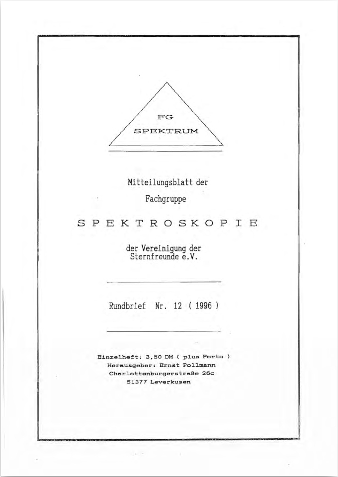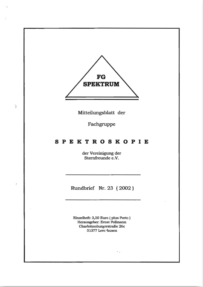 SPEKTRUM (ISSN 2363-5894) is the world's oldest ProAm Journal for spectroscopy. The text can be written in German and English. Dr. Thomas Hunger is our current editor and publisher. Please send all contributions to him.