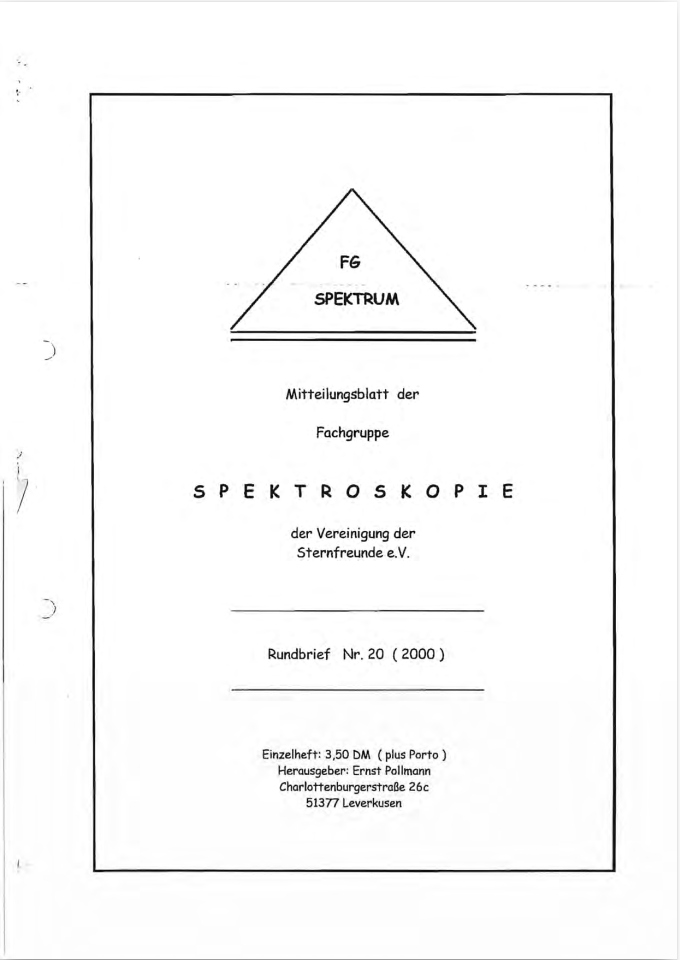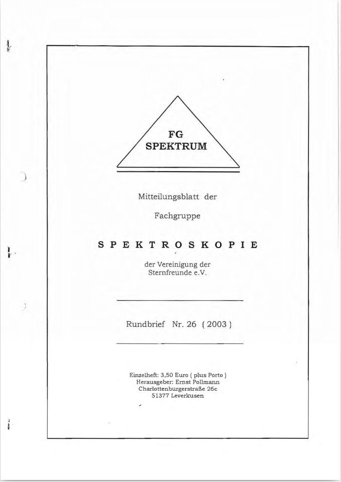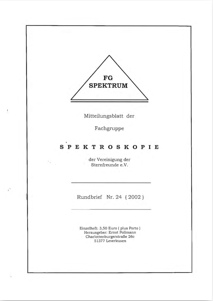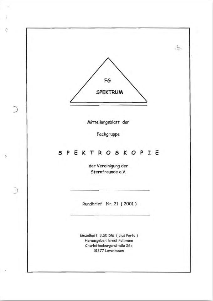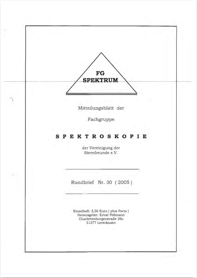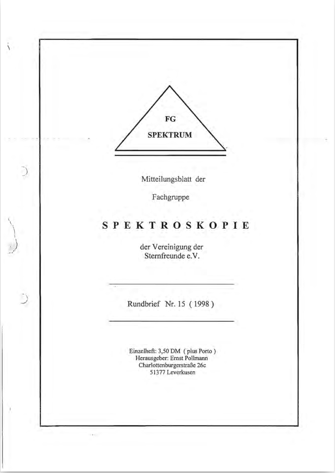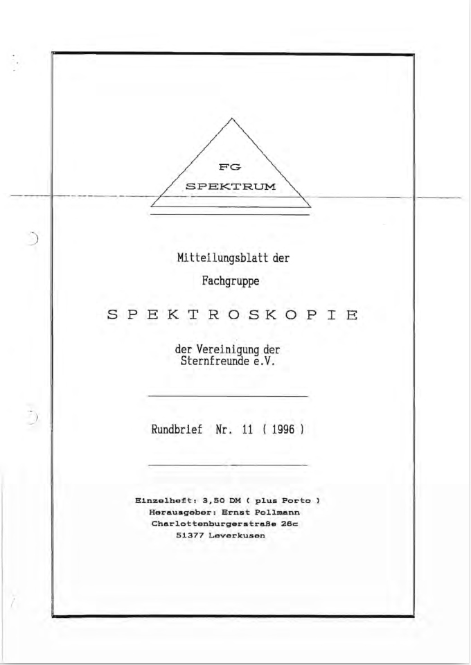 SPEKTRUM (ISSN 2363-5894) is the world's oldest ProAm Journal for spectroscopy. The text can be written in German and English. Dr. Thomas Hunger is our current editor and publisher. Please send all contributions to him.