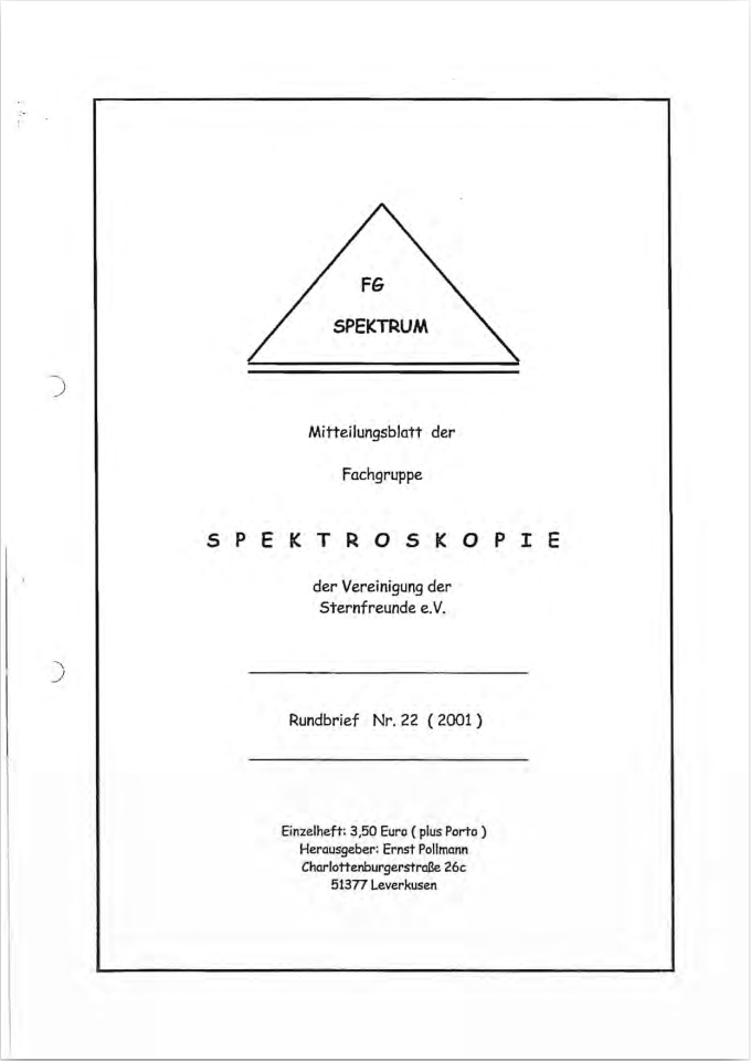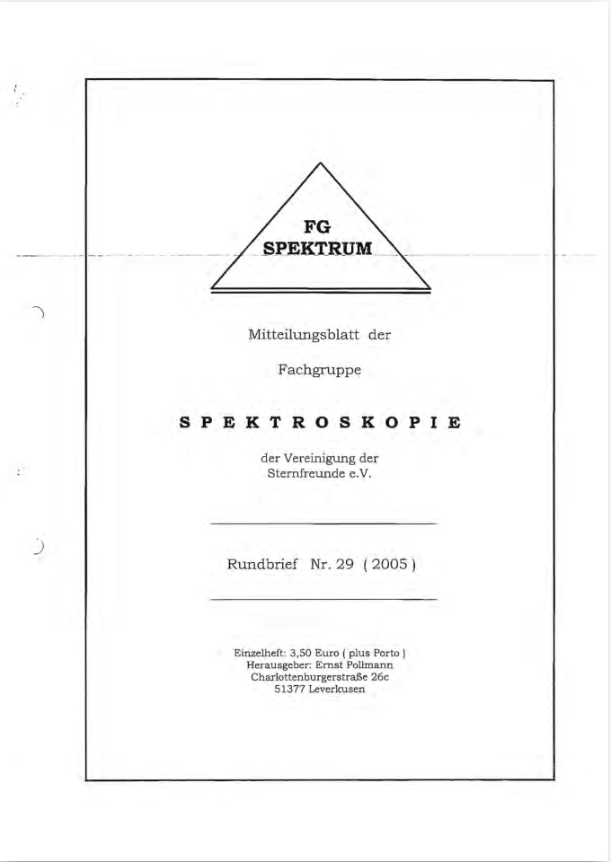 Links von privaten und öffentlichen Webseiten auf einzelne Journalausgaben in der Webseite der VdS-Fachgruppe bedürfen der Zustimmung der Fachgruppe Spektroskopie. Die Veröffentlichung in fremden Webseiten ist unzulässig.